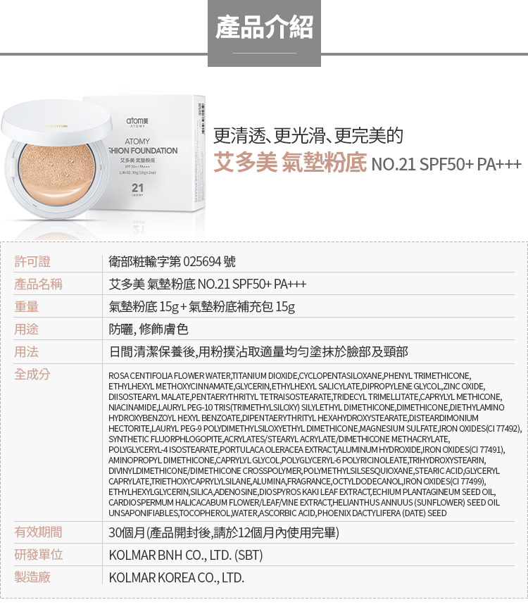 艾多美 氣墊粉底 NO.21 SPF50+ PA+++