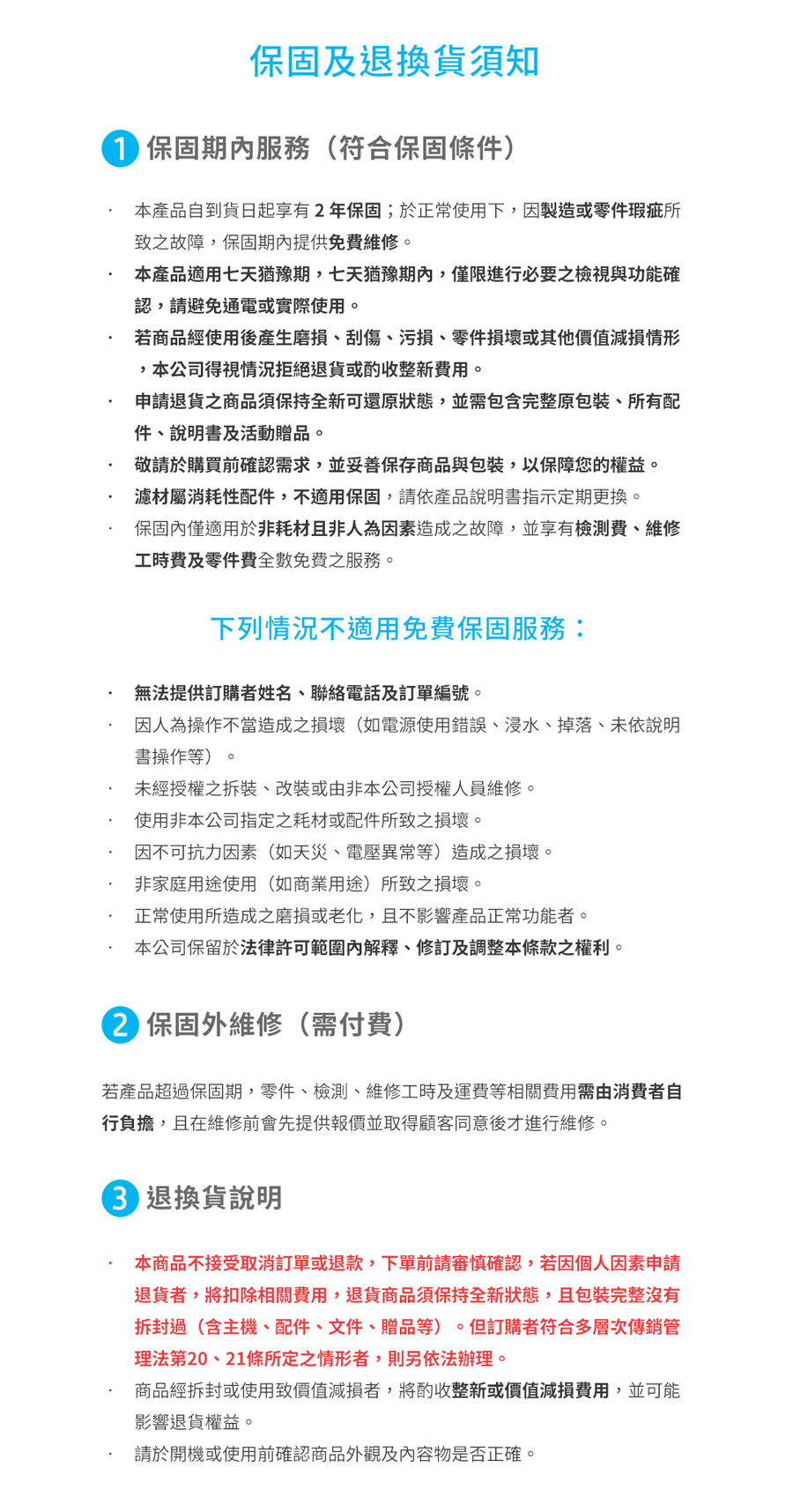 ( 因個人使用效果不滿意或不適合之非歸責本公司之退貨行為,本公司接受首次退貨,並保留再次退貨之拒絕權利。)